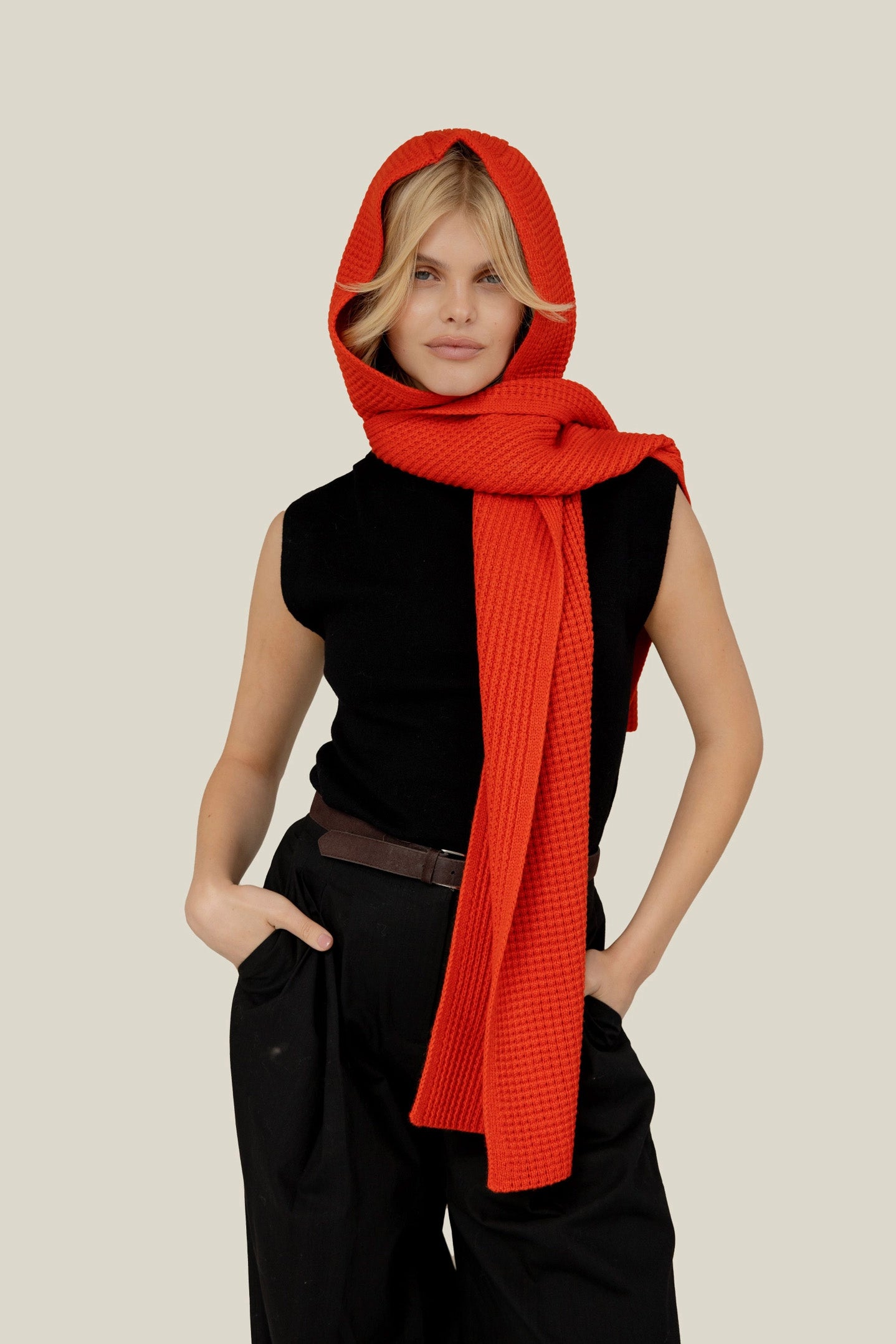 The hooded scarf, a contemporary addition to the outwear repertoire. It has evolved into a beloved wardrobe staple capturing everyone’s attention. Our vision features our much-loved Recycled Bottle material, knitted in a bold colour block style, designed to add a pop of colour to any winter day. Crafted from recycled plastic bottles, this scarf not only reduces global waste, but also repurposes it into a beautiful, cosy winter accessory. Designed to be chunky, stretchy, and soft, it’s the perfect accessory to take you anywhere - from frosty morning commutes, leisurely strolls through autumnal country sides, or hitting the alpine slopes.