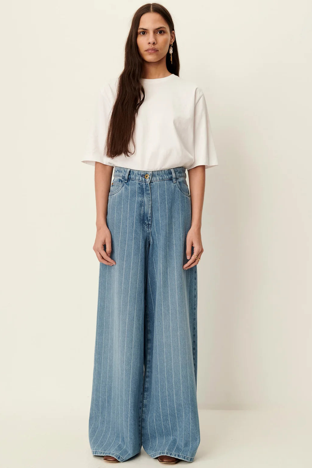 Ultra-high-rise, loose-fitting jeans with slightly flared legs, made from lightweight one-wash denim, woven in Spain.