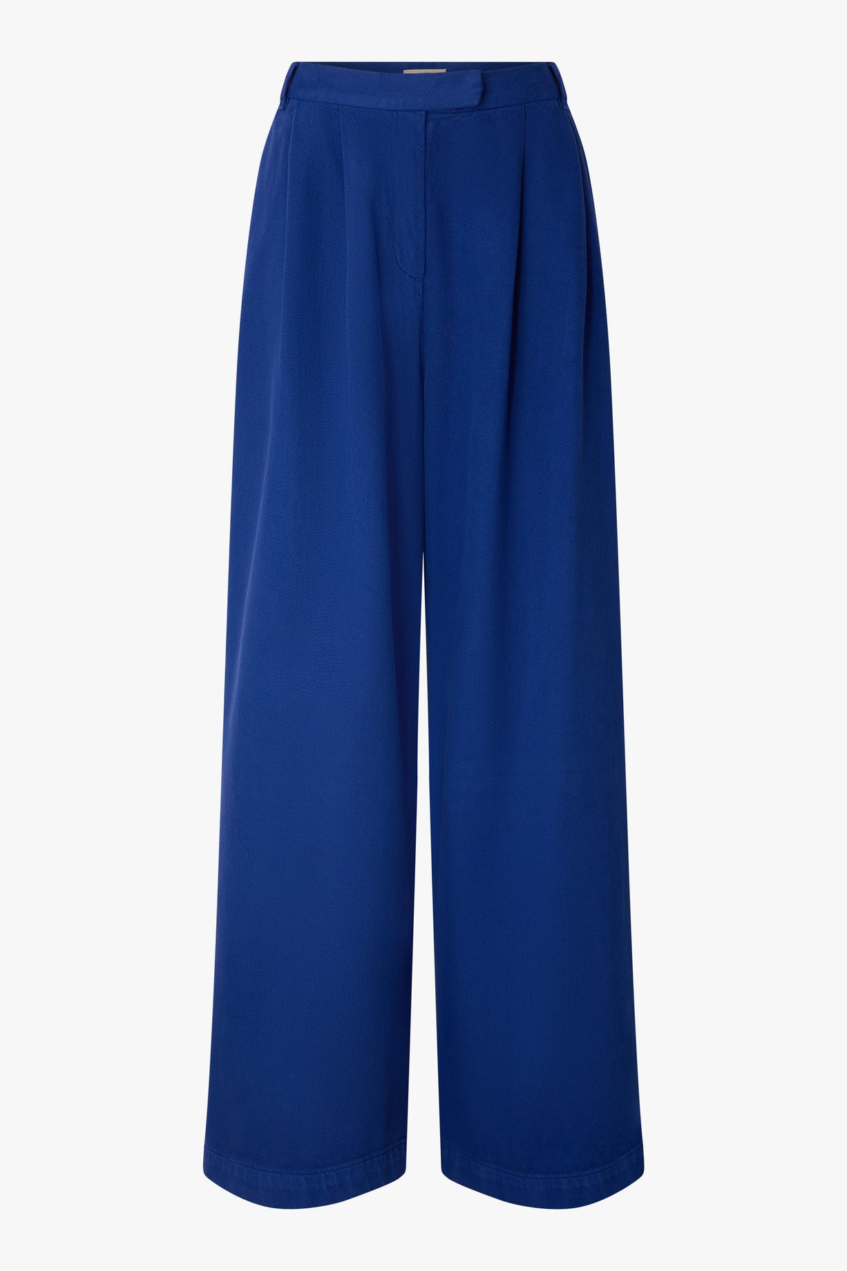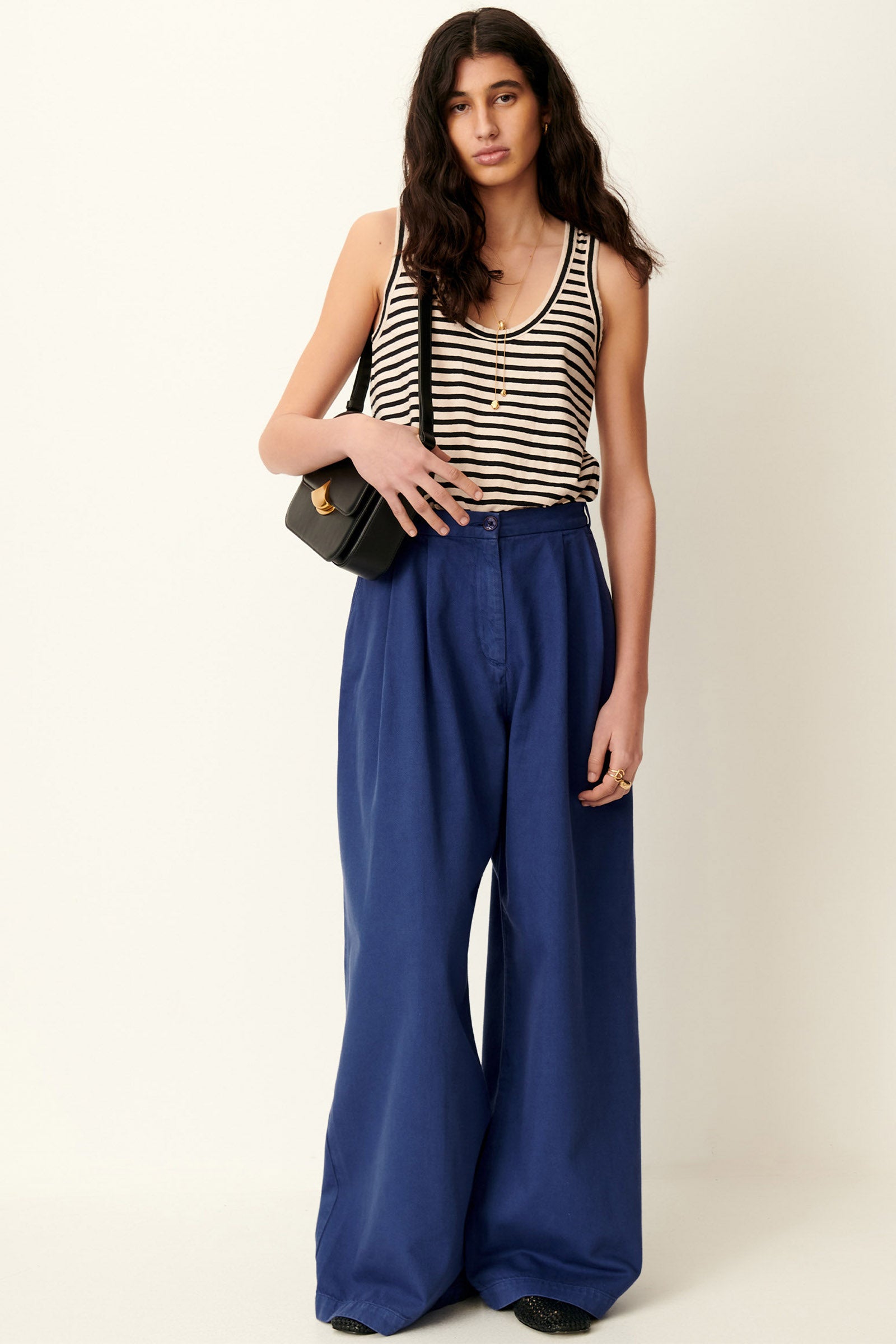 Wide-leg pleated pants with pleats below the waistband, in soft garment-dyed drill, woven in Spain.