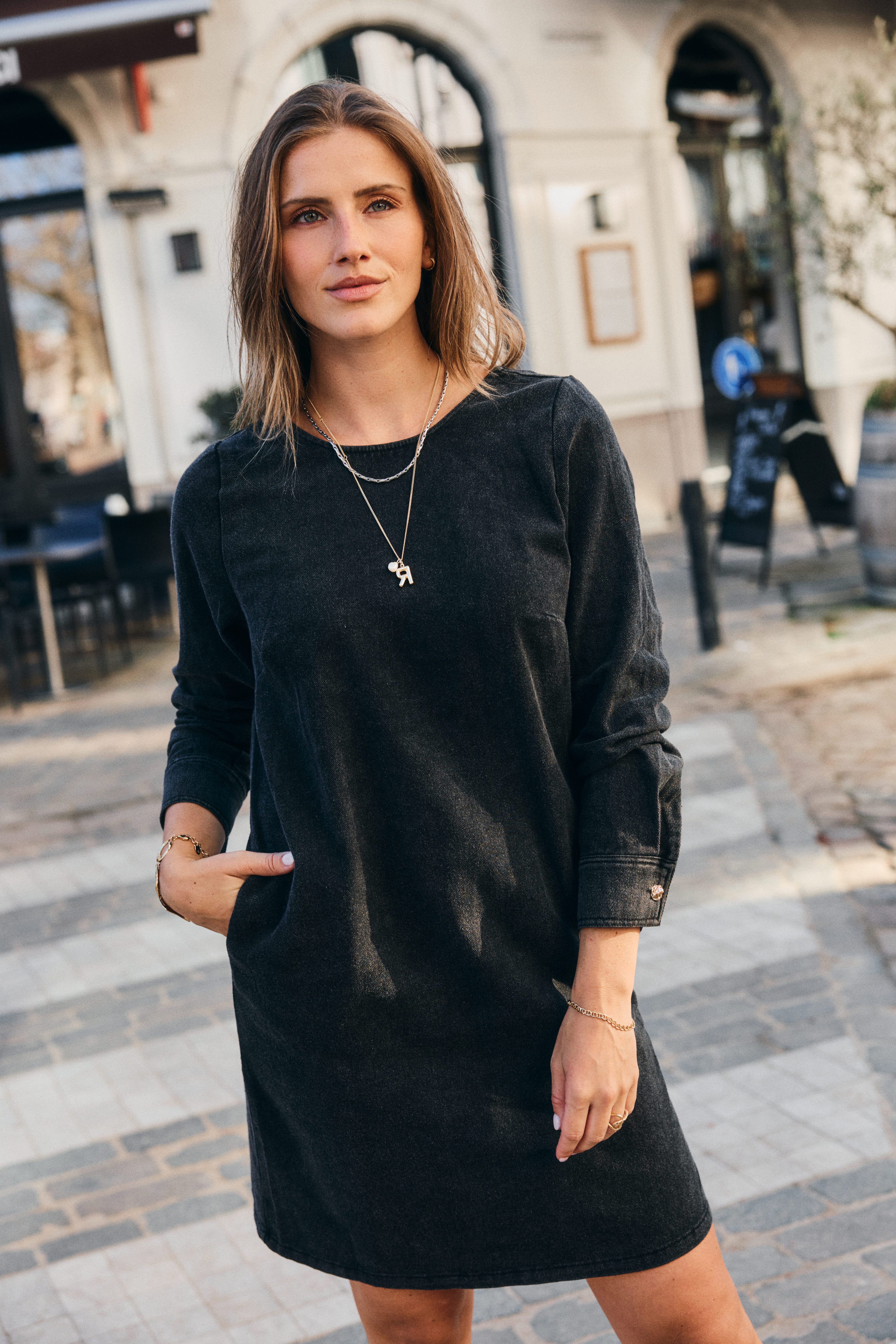 Effortlessly chic and undeniably cool, this black denim dress is your new wardrobe essential. With its timeless silhouette and versatile dark wash, it transitions seamlessly from casual coffee runs to evening hangouts. Layer it, dress it up, or keep it simple—this piece does it all. Perfect for anyone who knows that great style doesn't require trying too hard.