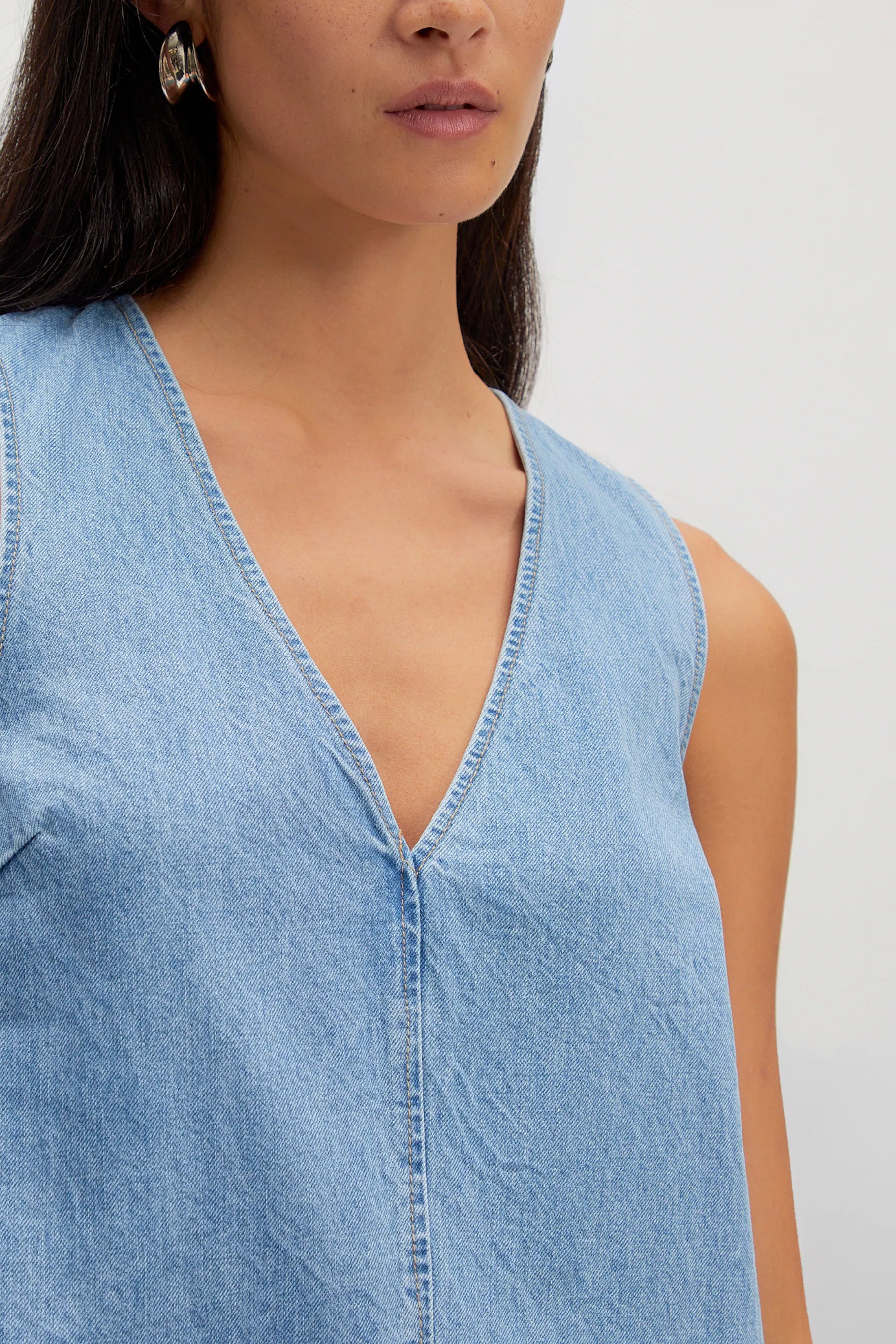 Embrace effortless style with the Xristina Dress in crisp light blue denim. This versatile piece combines classic denim appeal with a fresh, airy aesthetic perfect for warm-weather dressing. The soft fabric drapes beautifully while maintaining its shape, making it ideal for casual outings or relaxed weekend wear. A timeless wardrobe essential that transitions seamlessly from day to night.