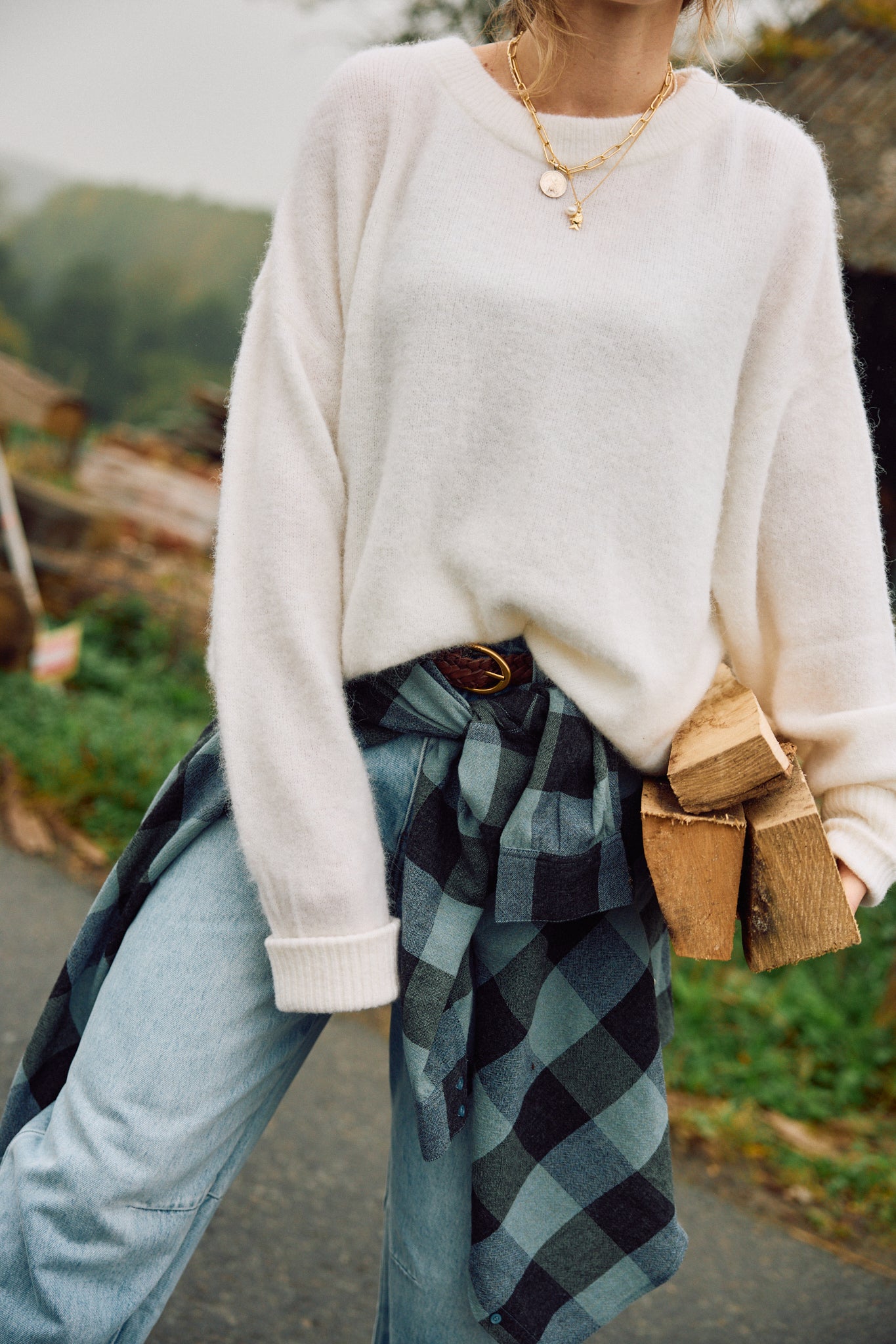 Shirt with drop shoulders in tartan etamine, woven in Italy, exclusive to Sessùn.