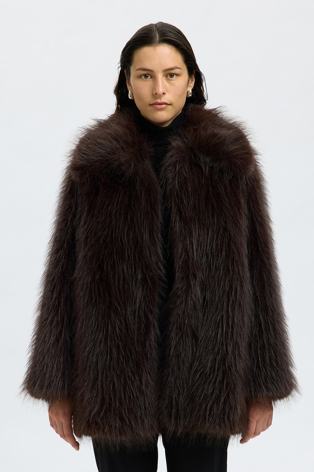 Wrap yourself in the cozy charm of the Brea Coat Delicioso, crafted from soft faux fur in a rich chocolate hue. This playful jacket features handy side pockets to keep your hands warm and essentials close, making chilly days a delight. Perfect for adding a touch of warmth and whimsy to any outfit!