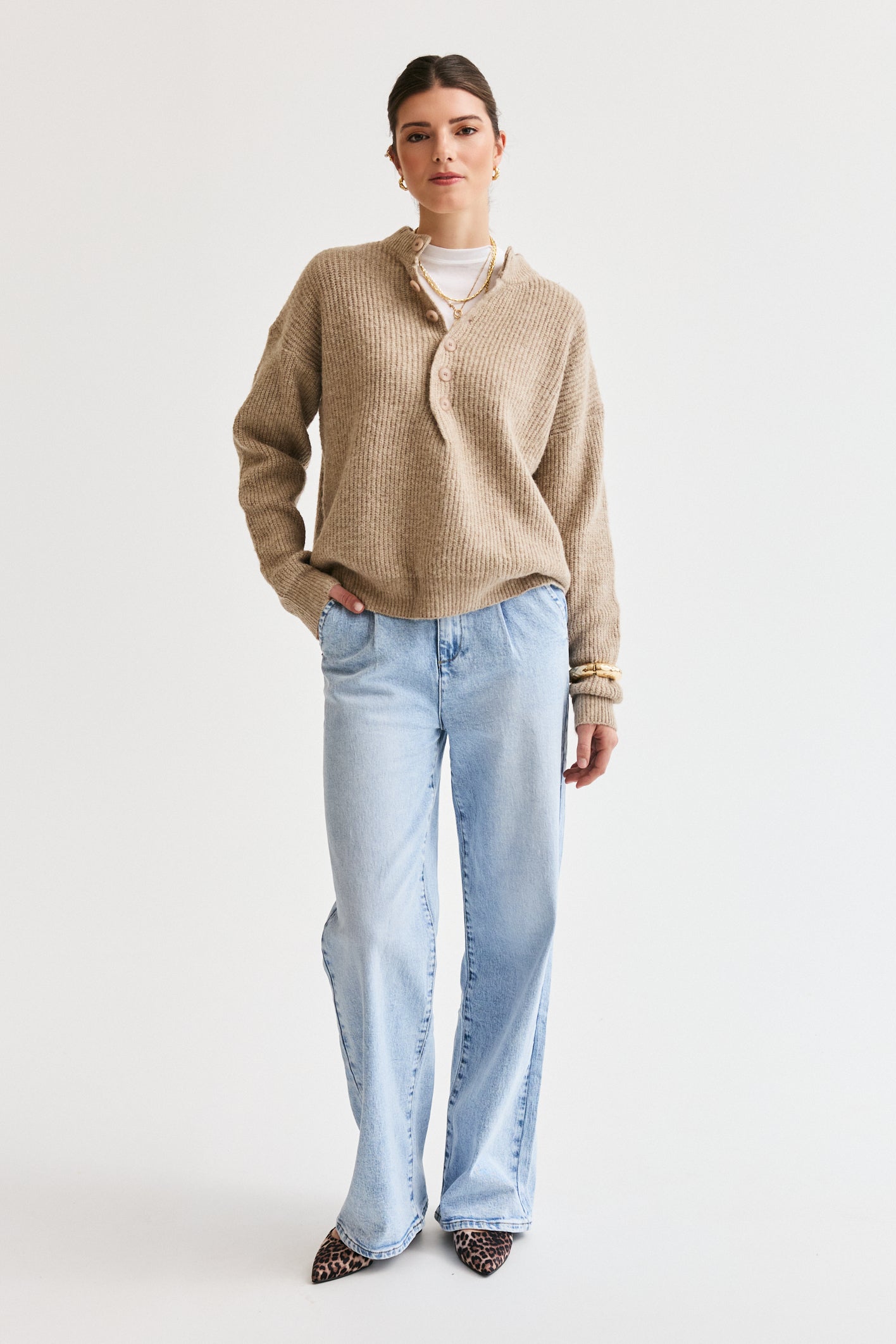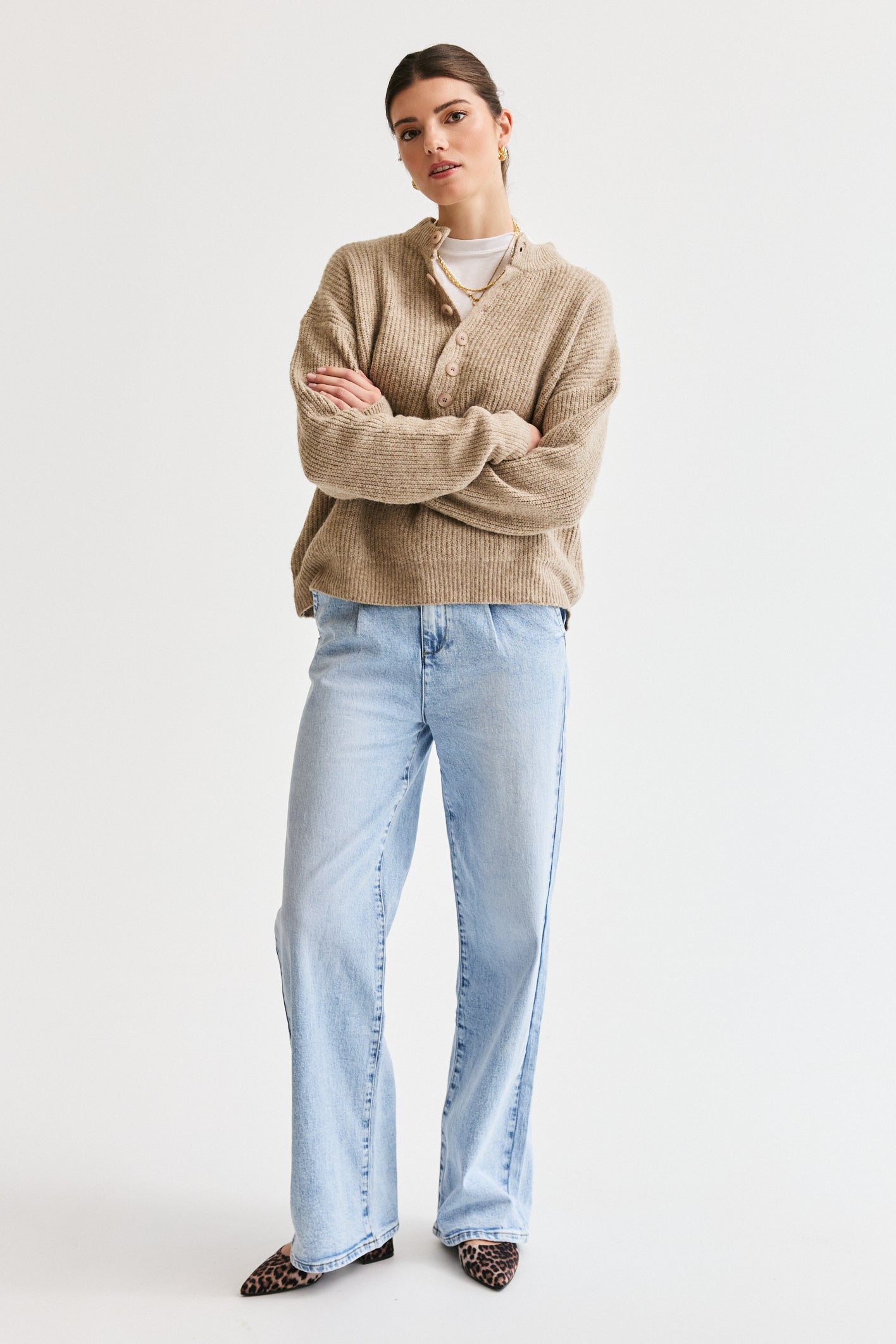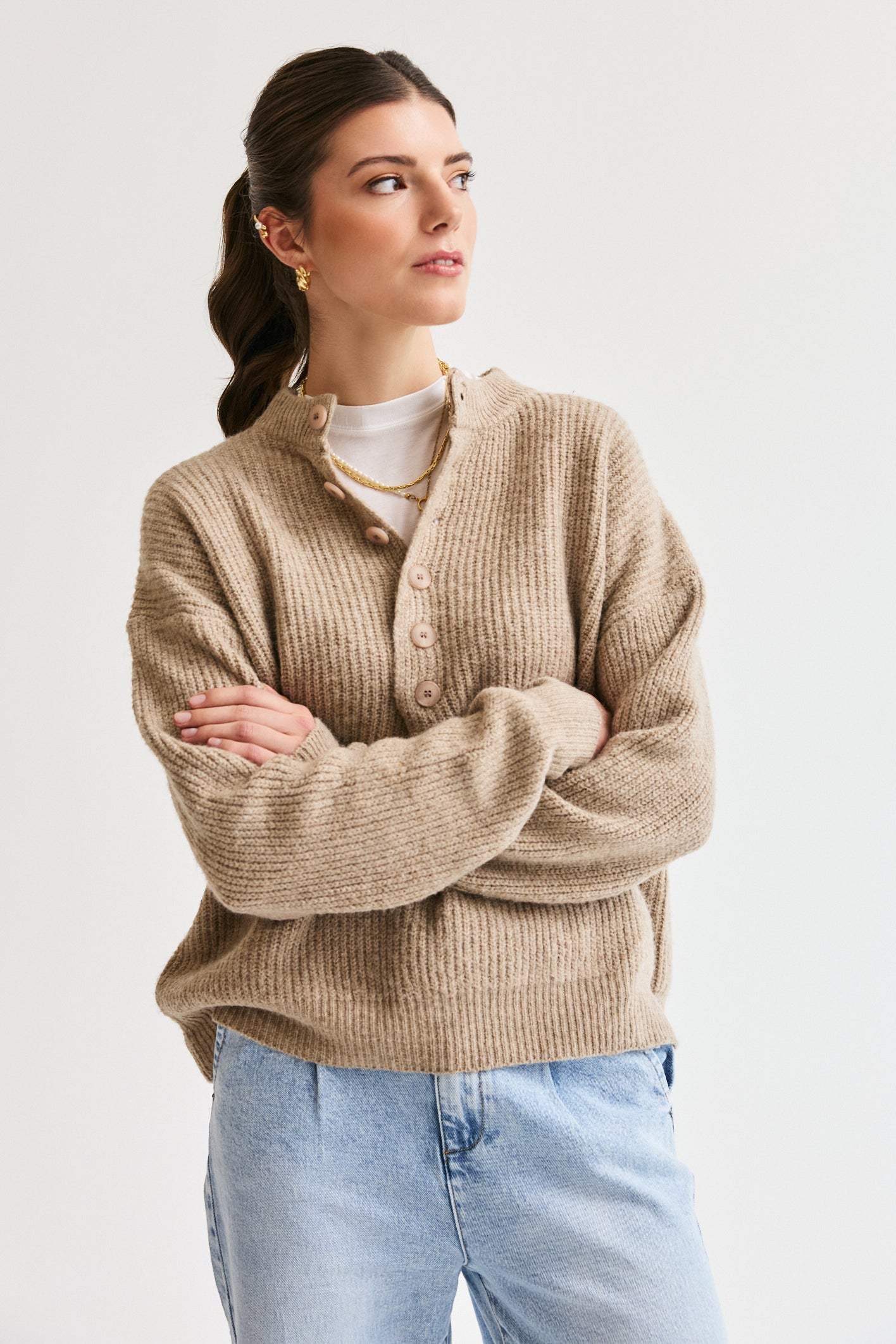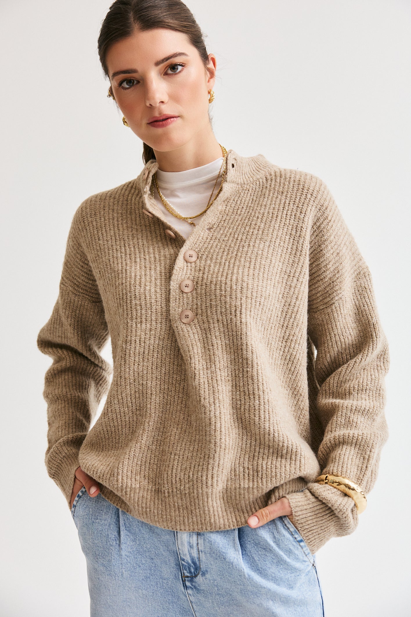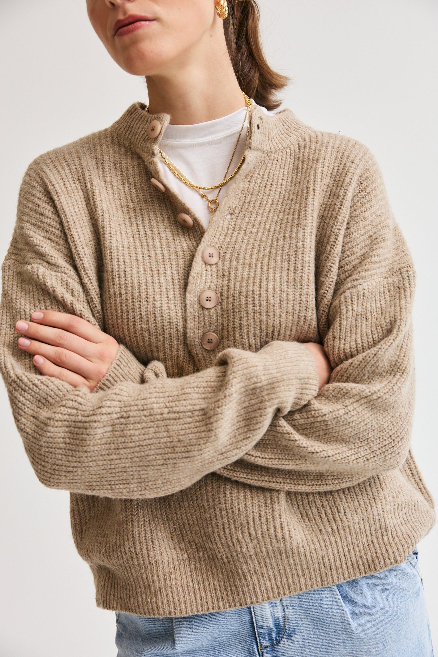 Button-Up Knit Taupe