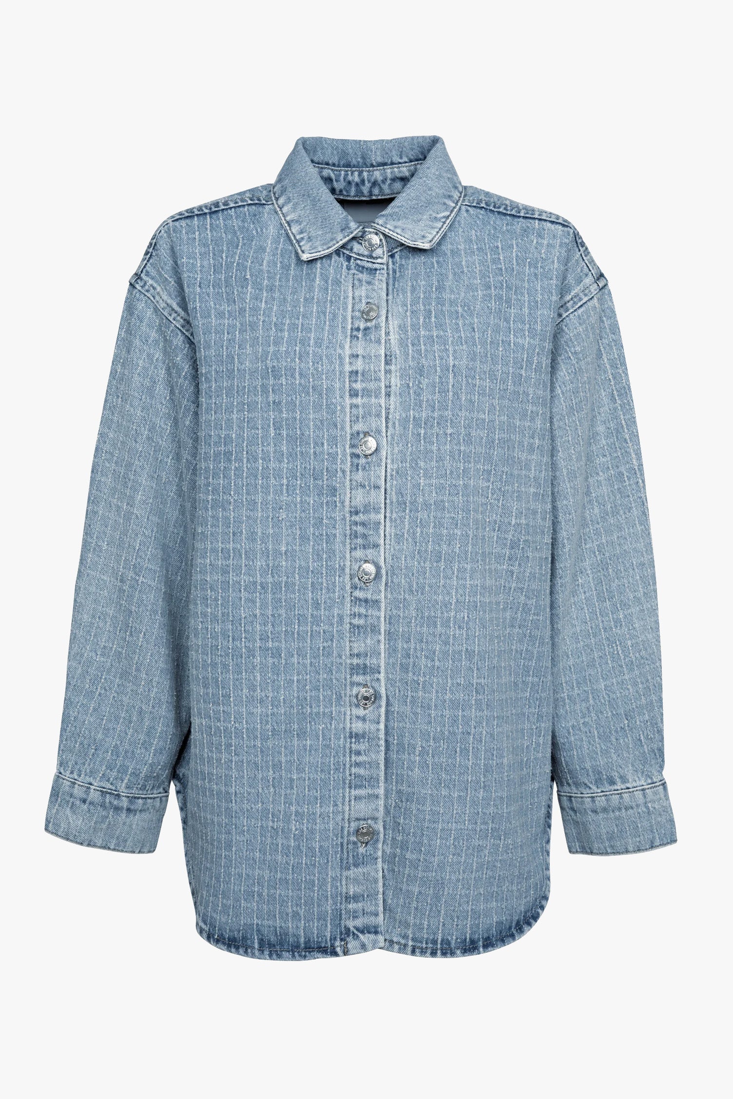This shirt proves that details make the difference. It plays with texture and lines, creating a strong, confident look. The subtle structure adds interest, while the denim base allows for endless combinations.