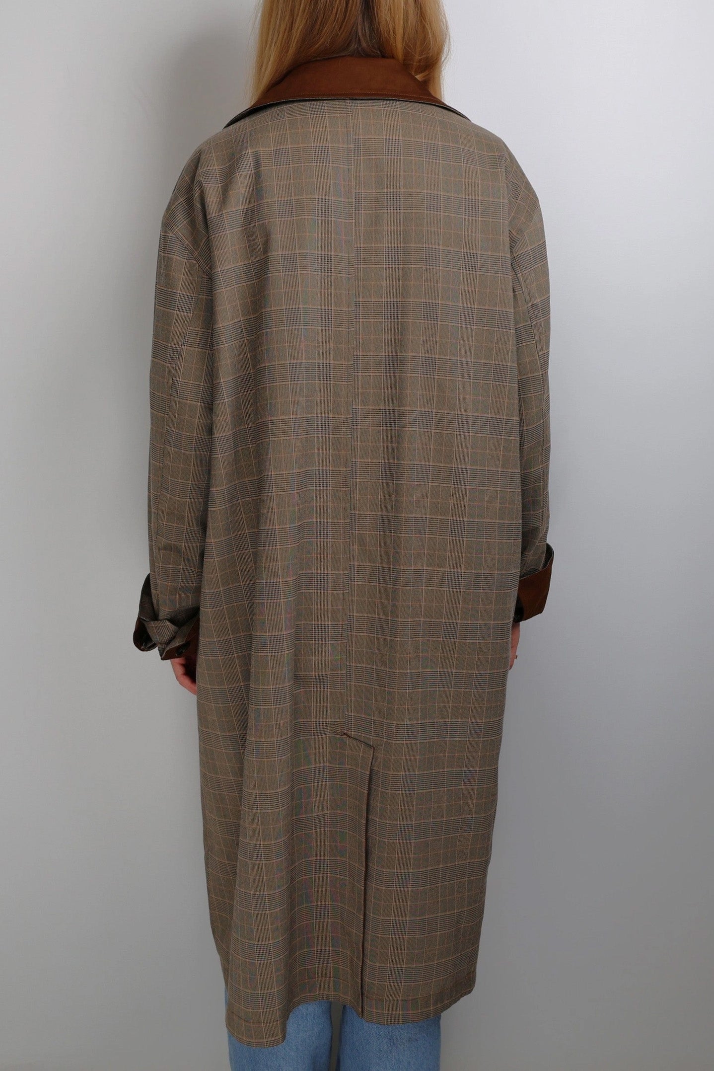 Our reversible women's trench coat is an elegant and practical piece that adapts to all your desires. On one side, a trendy check pattern for a bold and sophisticated look. On the other, a classic and timeless plain trench for a chic appearance in any circumstance. Its long cut highlights your silhouette.