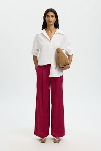 Effortlessly chic and breathable, the Lyra HW Linen Pants in Anemone bring a burst of color to your everyday wardrobe. Crafted from lightweight linen, these high-waisted pants offer comfort that moves with you, whether you're heading to brunch or a casual weekend adventure. The soft anemone hue feels fresh and modern, perfect for mixing with your favorite tops. Slip them on and feel the difference quality linen makes.
