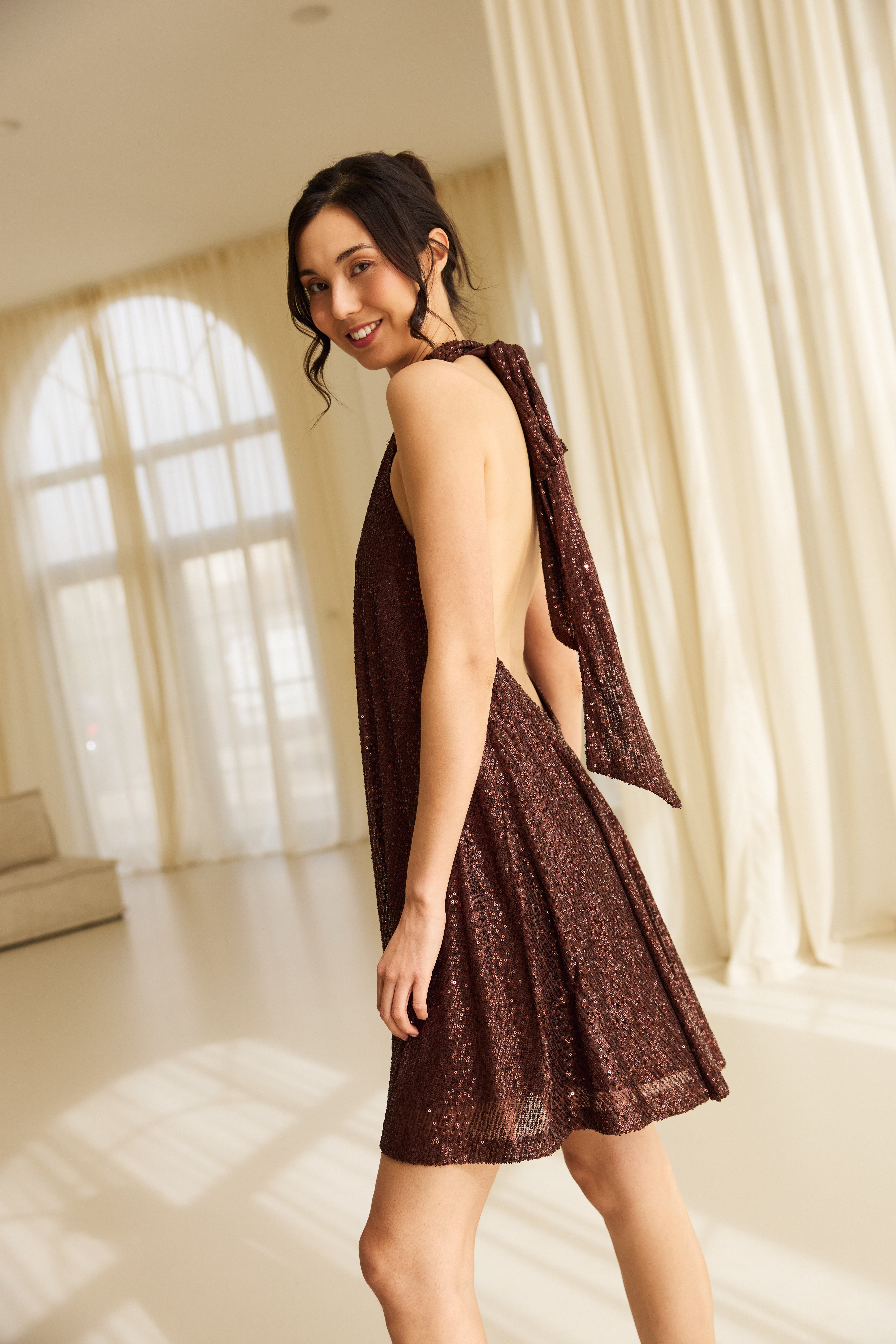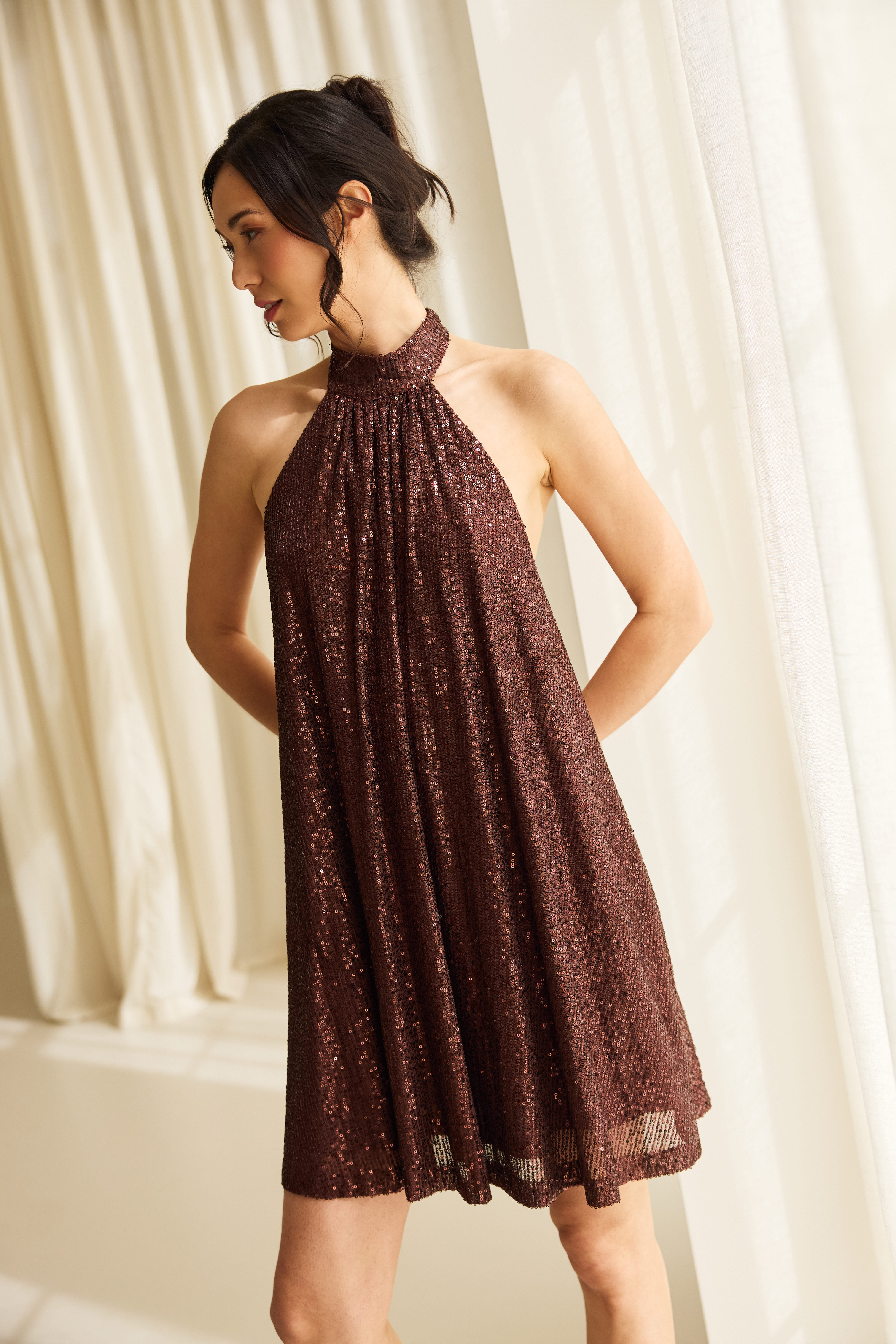 Toni Sequins Dress Chocolate