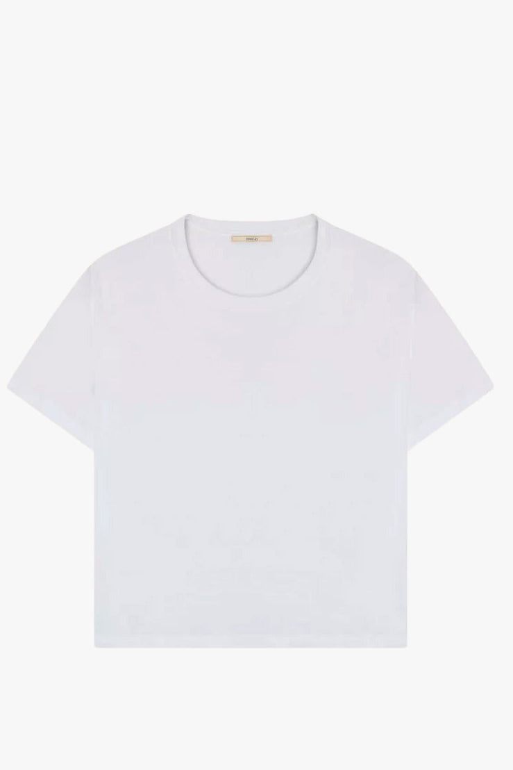 Short sleeves wide T-shirt in fluid simple knit fabric.