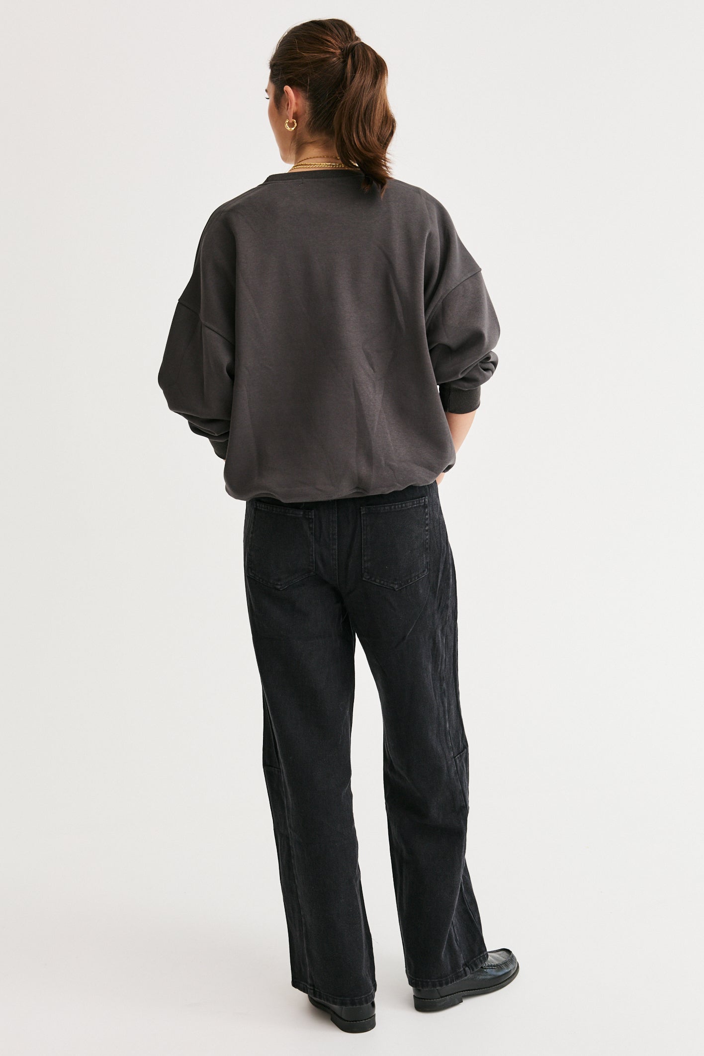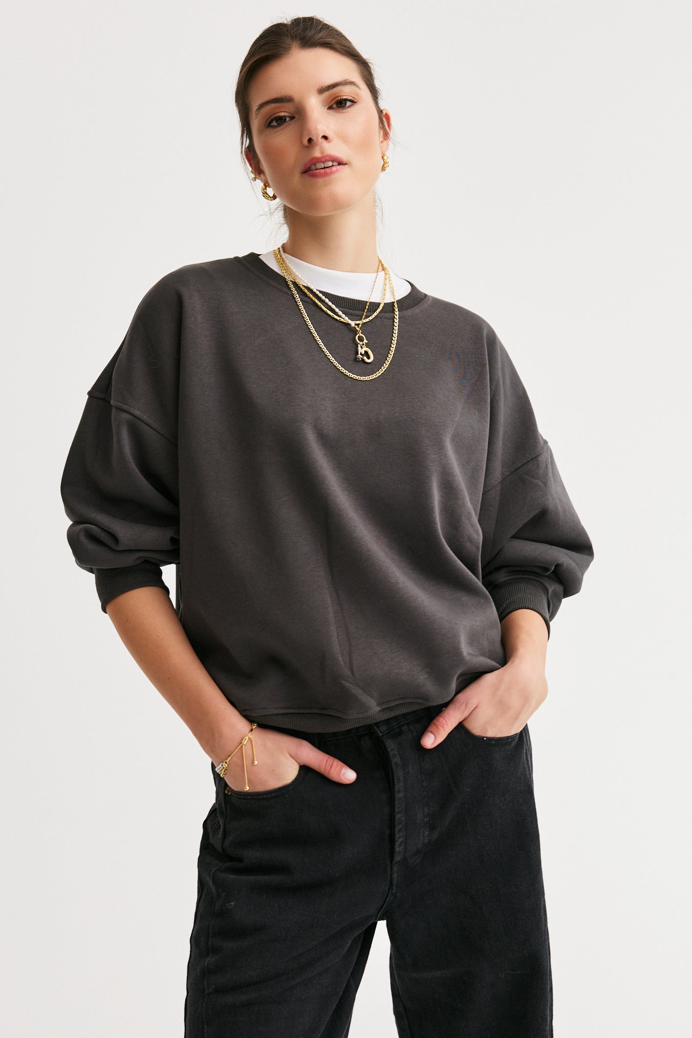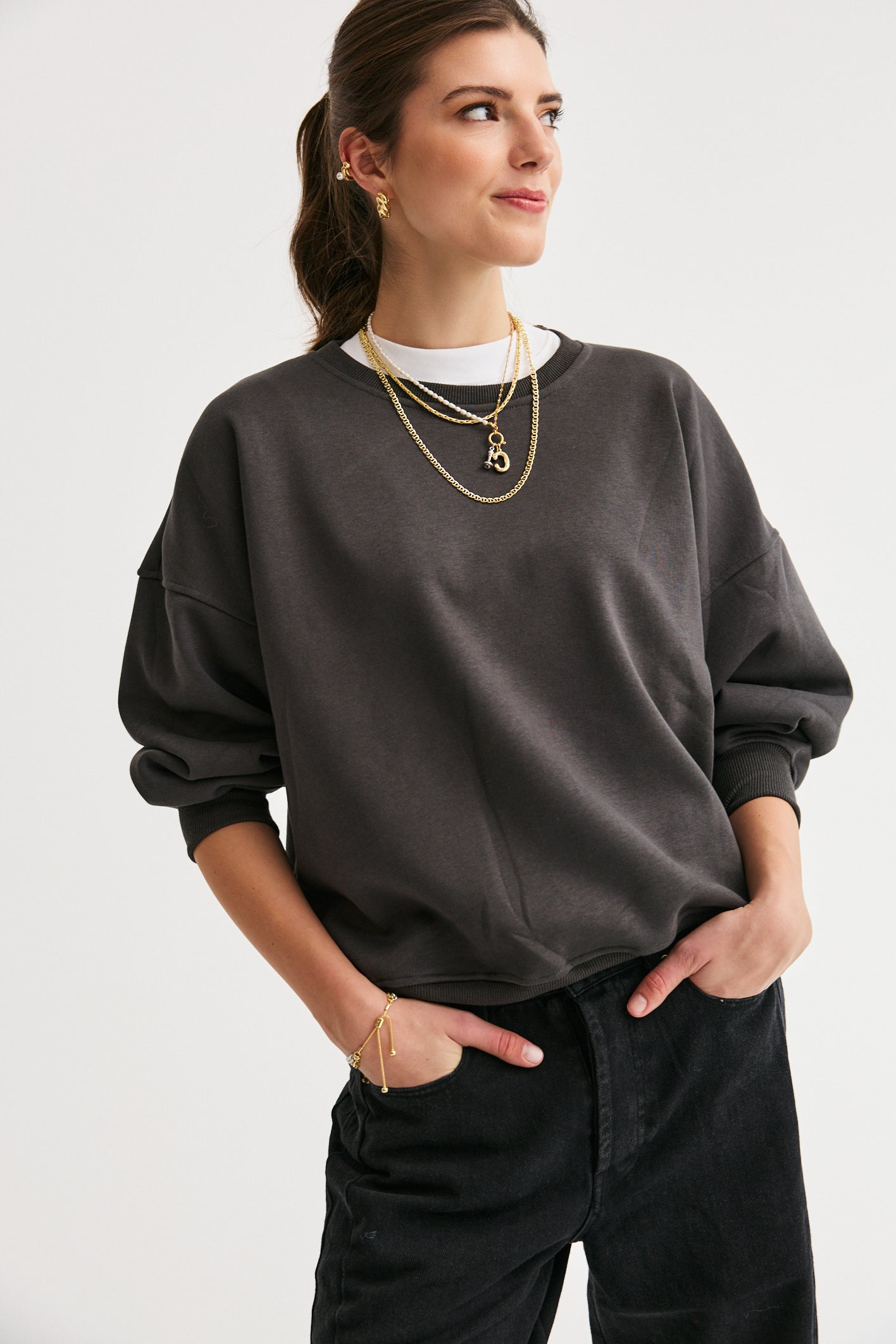 Stay cozy and stylish in the Olivia Sweater. Featuring a perfectly basic design with an oversized cut, this sweater offers a relaxed fit that’s ideal for layering. The soft fleece lining adds a warm, cuddly feel, making it your go-to for laid-back days and chilly evenings. Embrace comfort with a playful touch in this effortlessly cool wardrobe staple.