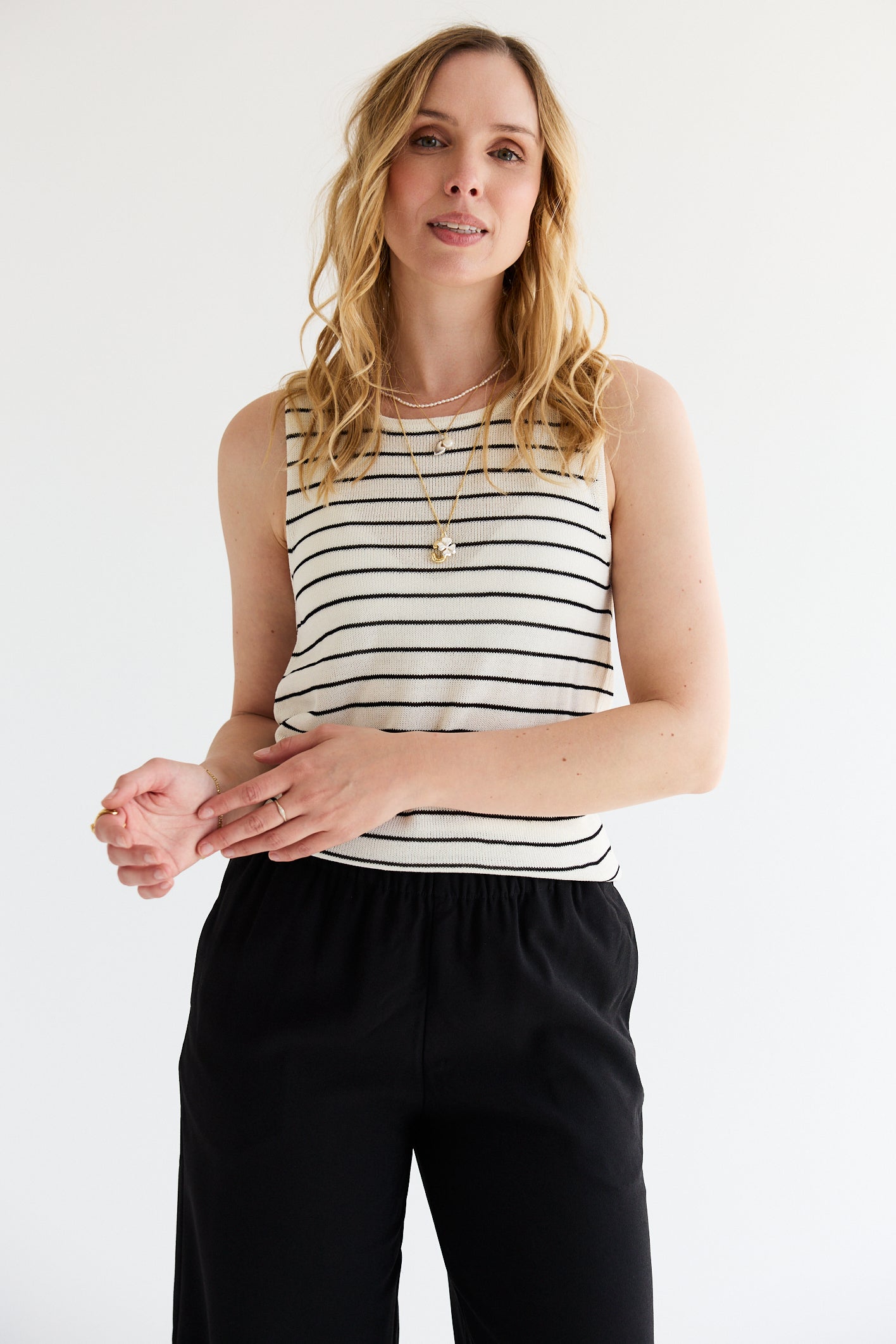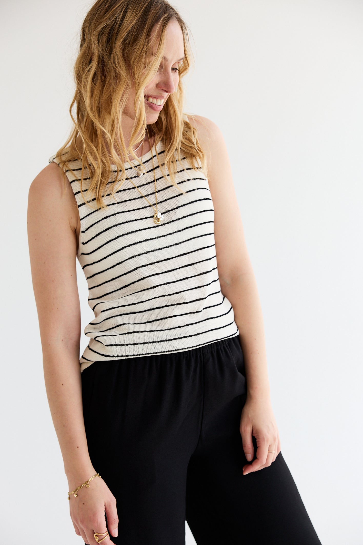Moon Knit Top Stripes Birch/Black