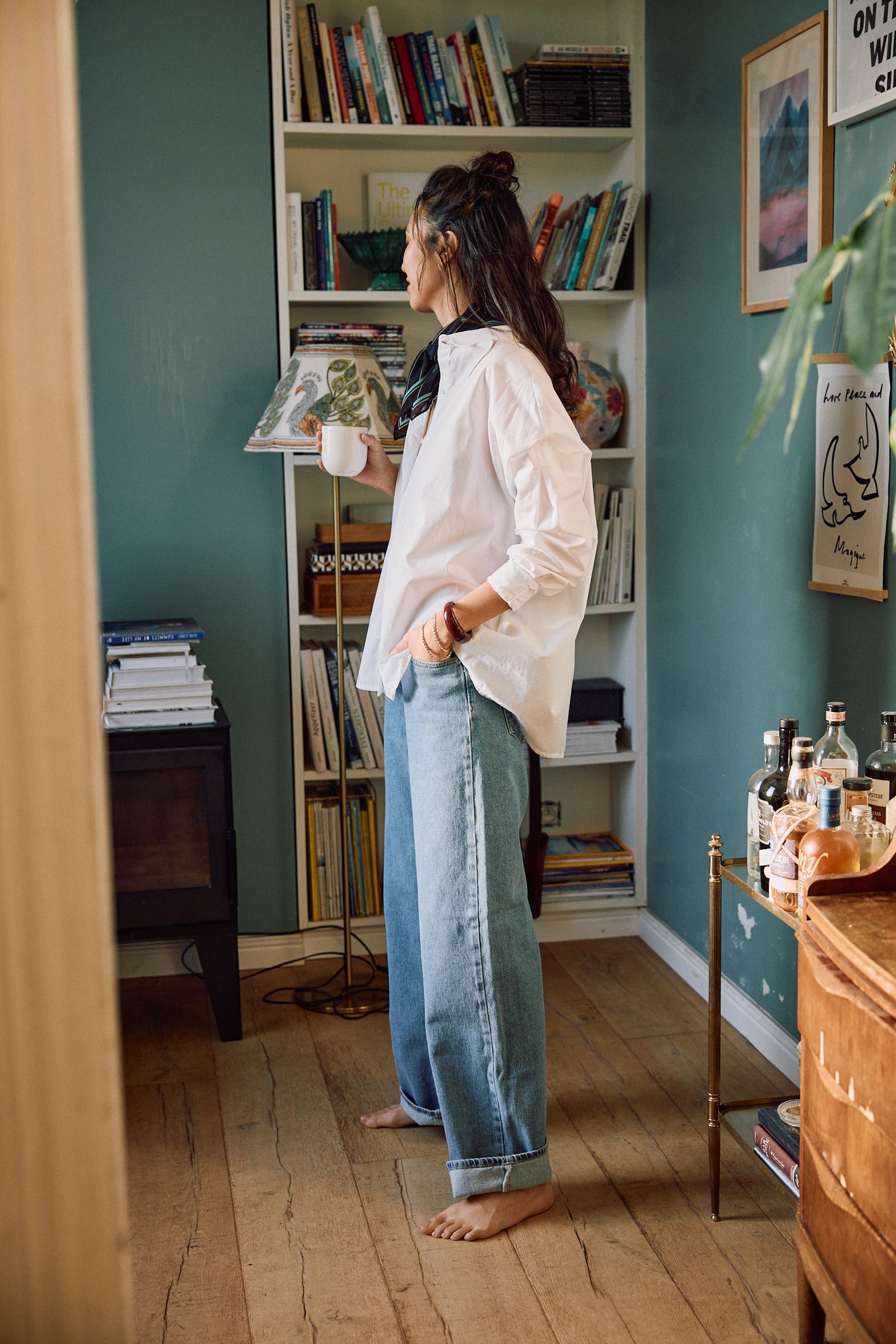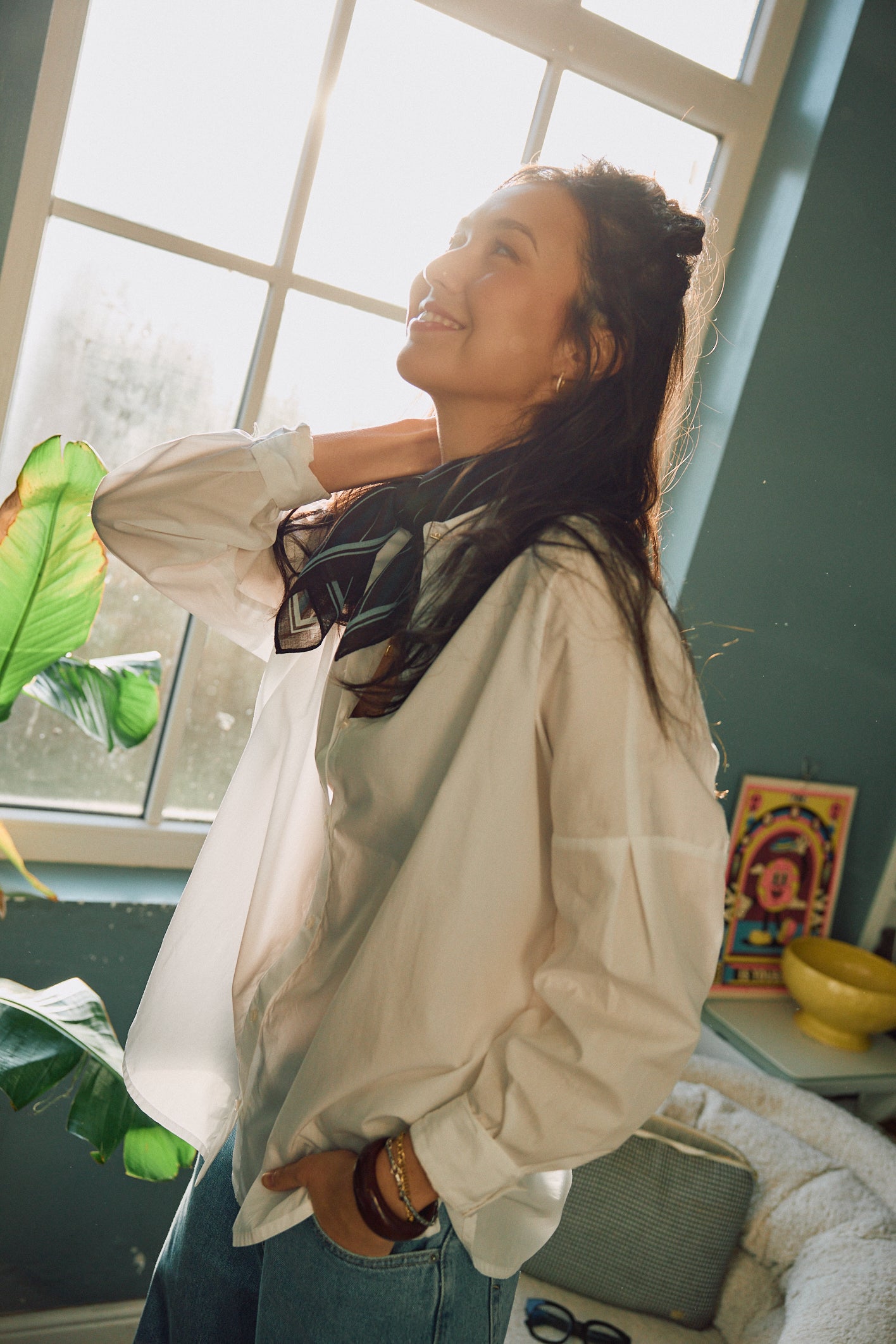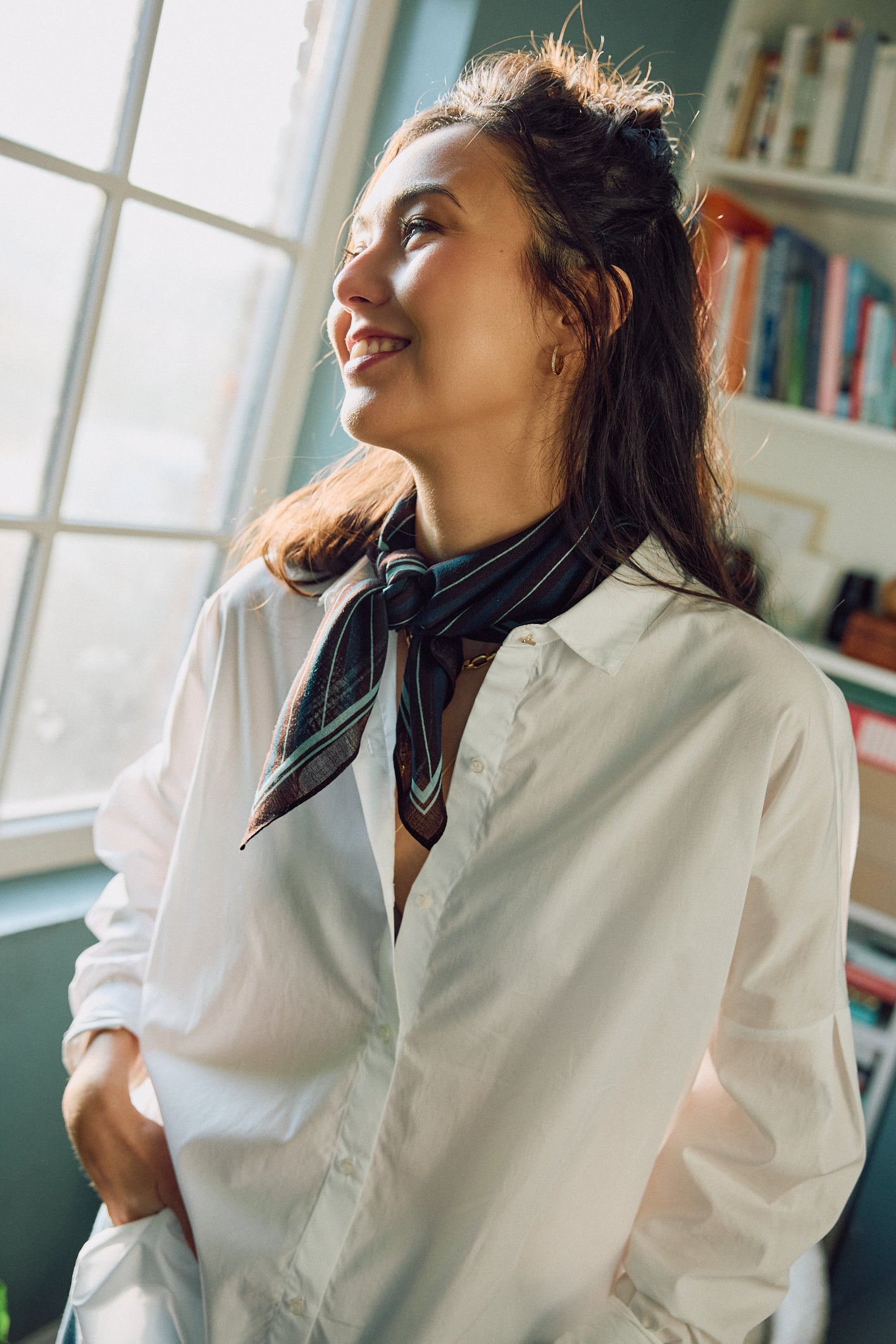 Loose-fitting shirt with drop shoulders in compact organic cotton poplin, woven in Italy.
