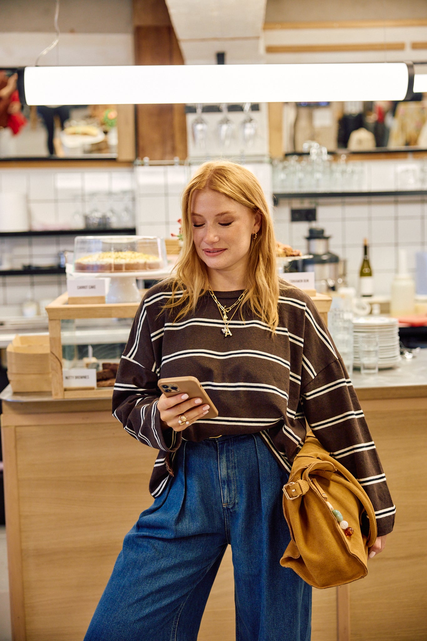 Experience the perfect blend of cool and effortless with the Farrow LS Top in Brown. Its oversized fit invites comfort while making a bold style statement. Whether you're out for fun or lounging at home, this top keeps you feeling relaxed and looking effortlessly chic. Get ready to fall in love with your new go-to favorite.