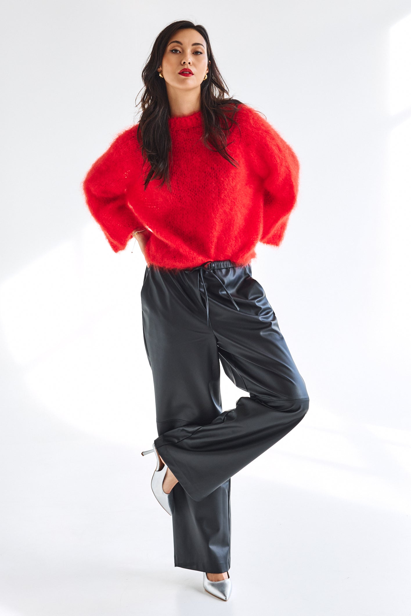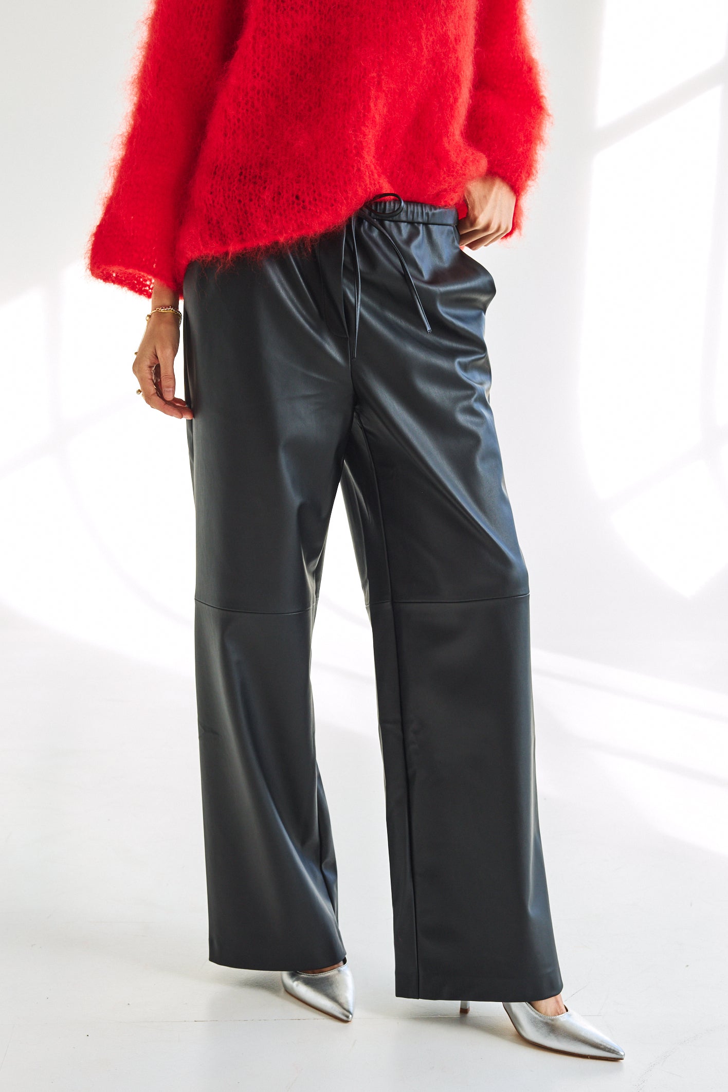 Step into style with the Jannah PU Trousers in black. Crafted from sleek PU leather, these wide-legged trousers bring effortless edge to any outfit. Their roomy fit ensures comfort while turning heads, making them perfect for playful days or nights out. Pair them with your favorite top and own the spotlight wherever you go!